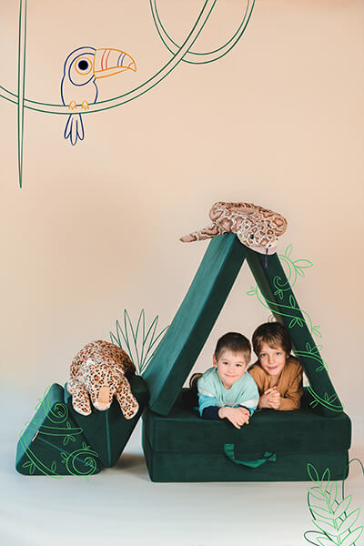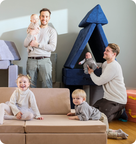 Driven by our colorful everyday life with a total of four children, Felix and Michael were looking for a mix of versatile toys and sofas that could be used sustainably and adapt to changing motor and mental skills throughout childhood.