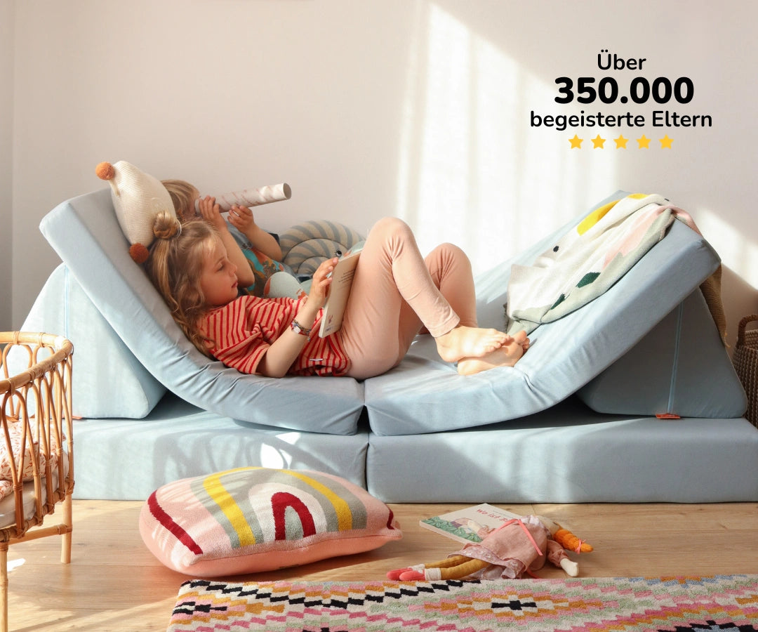 Driven by our colorful everyday life with a total of four children, Felix and Michael were looking for a mix of versatile toys and sofas that could be used sustainably and adapt to changing motor and mental skills throughout childhood.