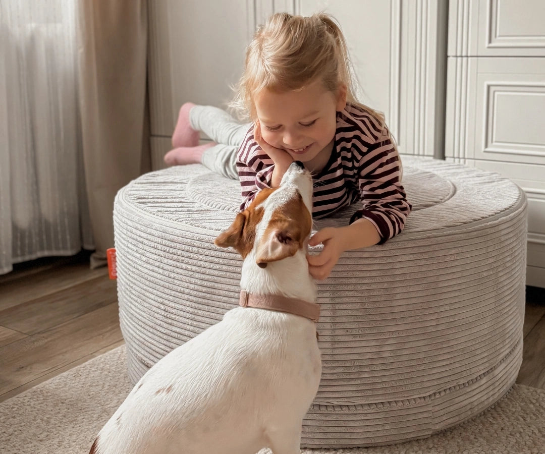 Wichtig: Wie bei allen Bewegungs- und Spielmöbeln sollten insbesondere kleinere Kinder beim wilden Toben beaufsichtigt werden und der Donut nicht in der Nähe von Treppen oder scharfen Kanten stehen.