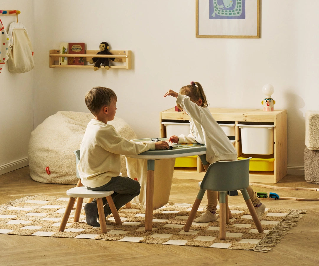 Wenn es draußen grau wird, sorgt der Funzy Spieltisch drinnen für Kreativität, Ordnung und Freude. Das clevere Geschenk, das über Jahre begeistert.