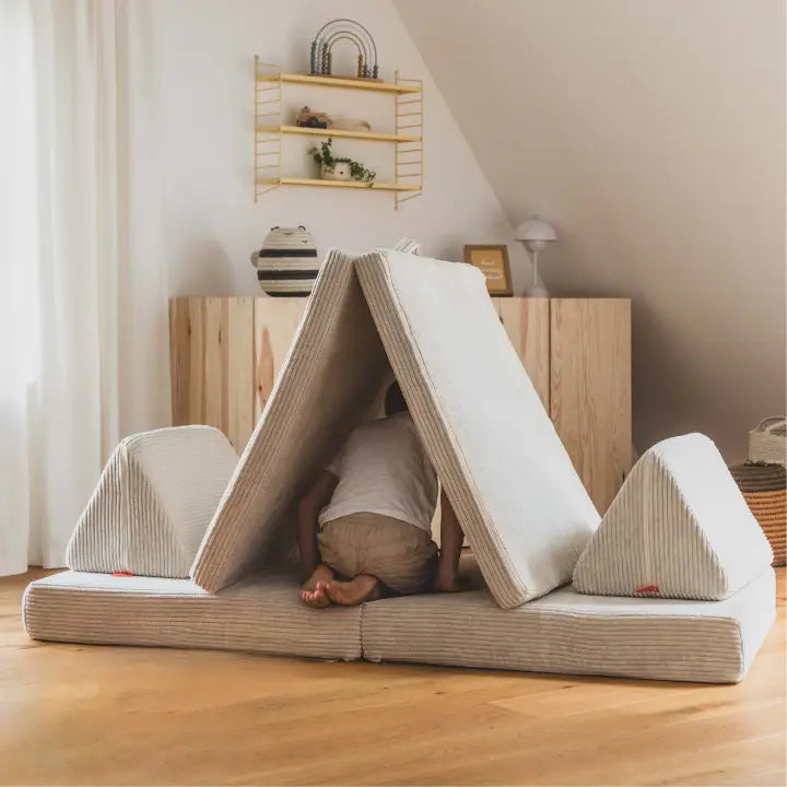 Funzy not only offers your children almost endless fun or a cozy cuddly corner, it also looks beautiful in the children's room thanks to its timeless design. To ensure that Funzy suits every interior, we regularly release more colors and already have a versatile color palette from neutral to bright colors. With the quick and easy covering of the foam parts, your Funzy can easily be adapted to any change in your interior.