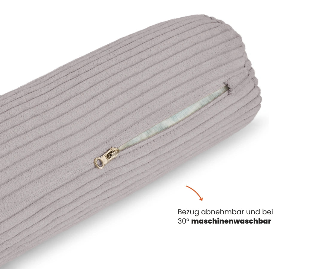 The cuddly soft corduroy cover feels pleasantly soft and is also robust enough for everyday family life. The bed snake protects against hard cot bars or bed edges and transforms the bed into a soft, secure nest. At the same time, it can be used in a variety of ways – for cuddling, as a positioning aid, or as a cozy boundary for reading and relaxing.