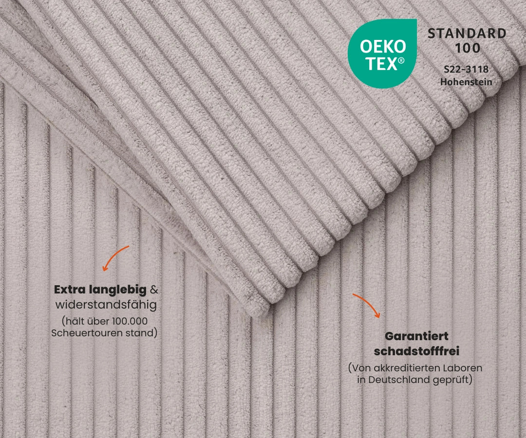 • Cuddly soft corduroy cover – pleasantly soft, durable and long-lasting