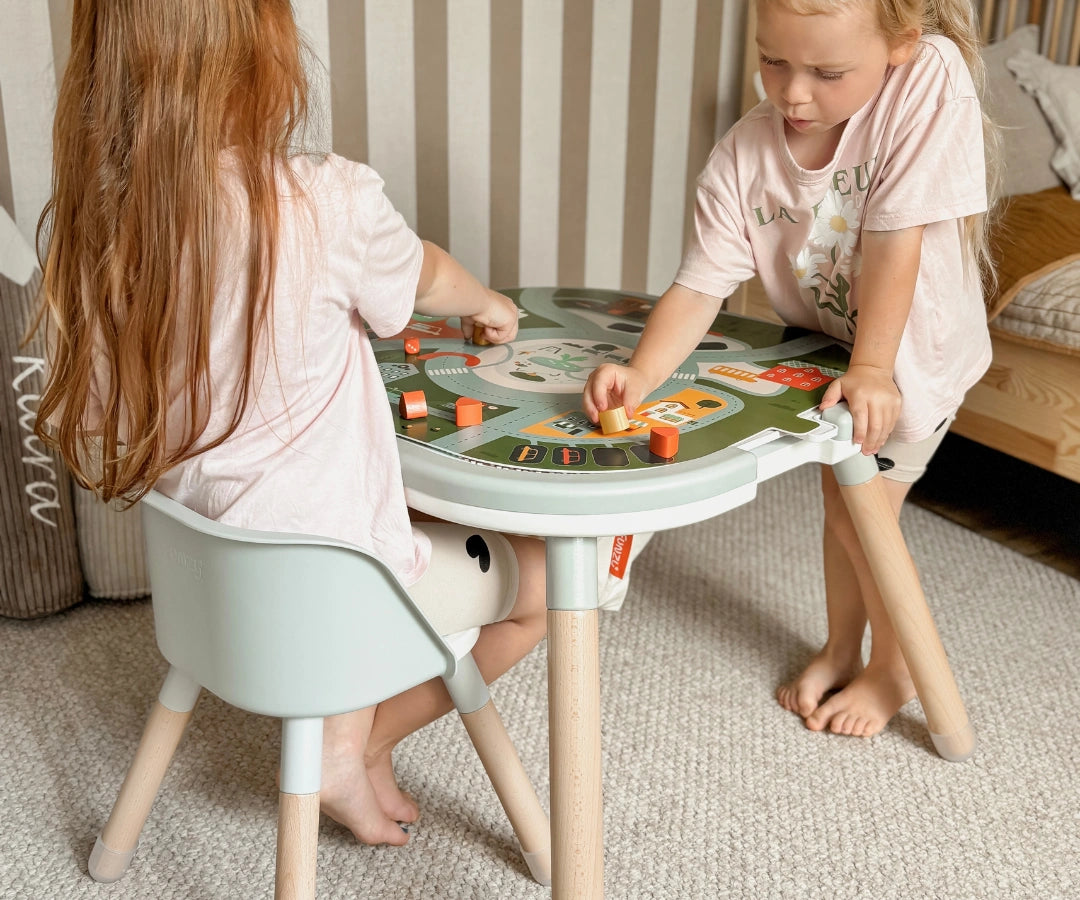 Yes! The 60 x 60 cm play surface offers enough space for siblings or friends. Whether building, painting, or sorting together, the table invites cooperative play without feeling cramped.