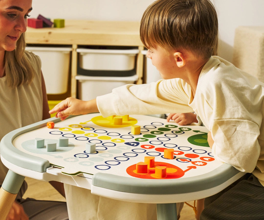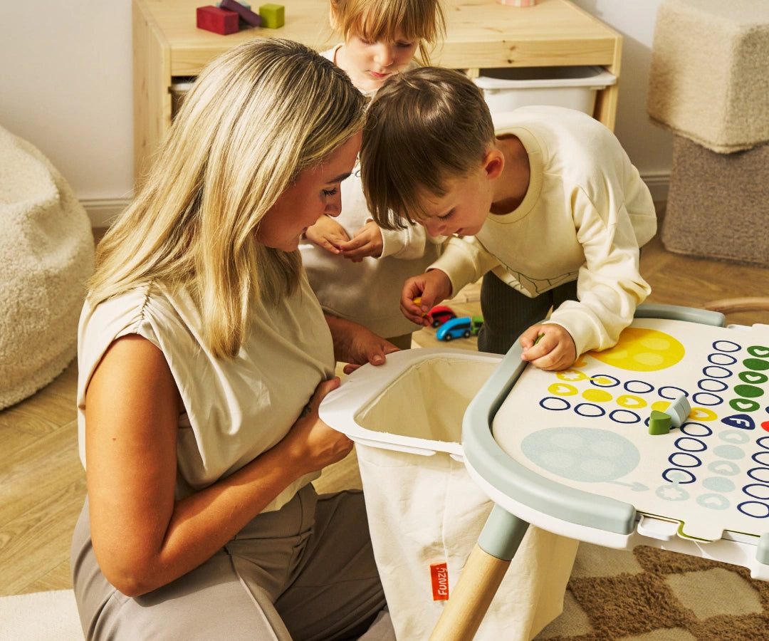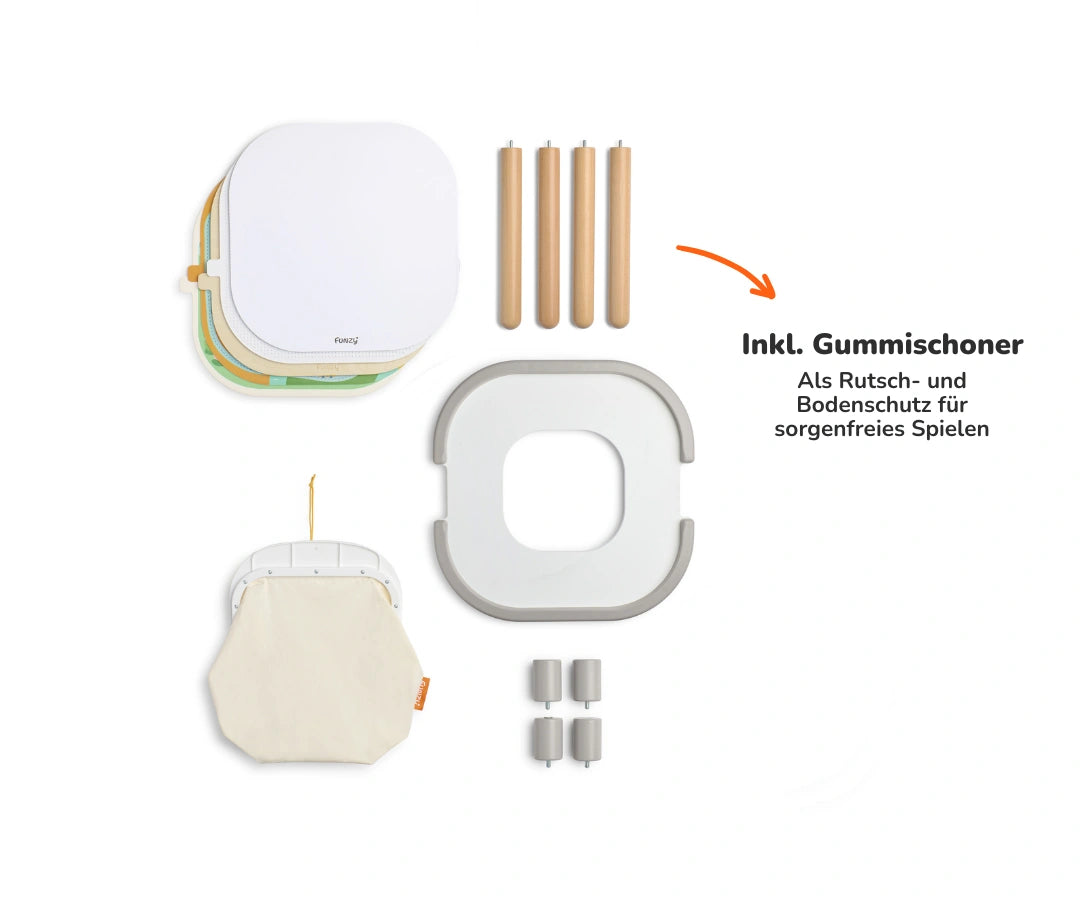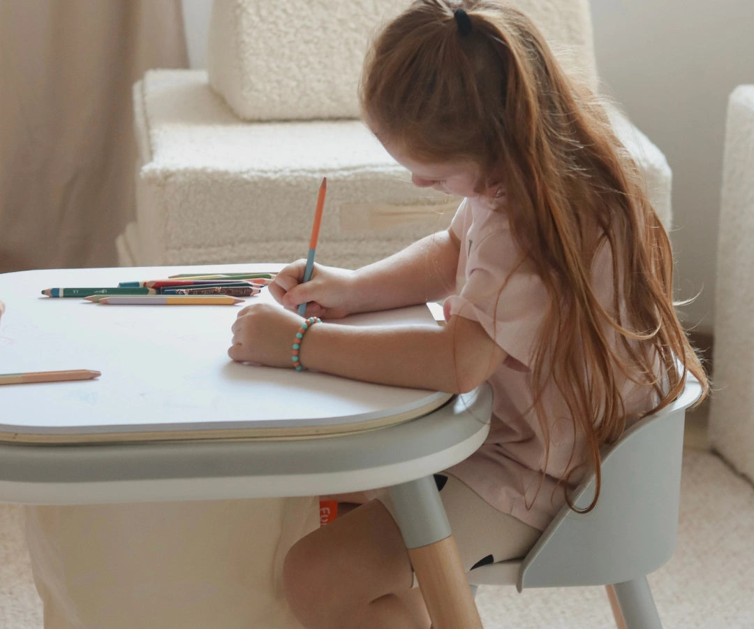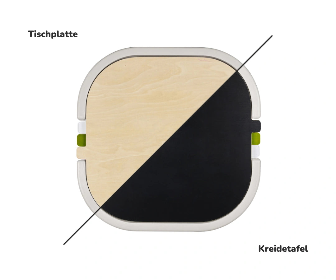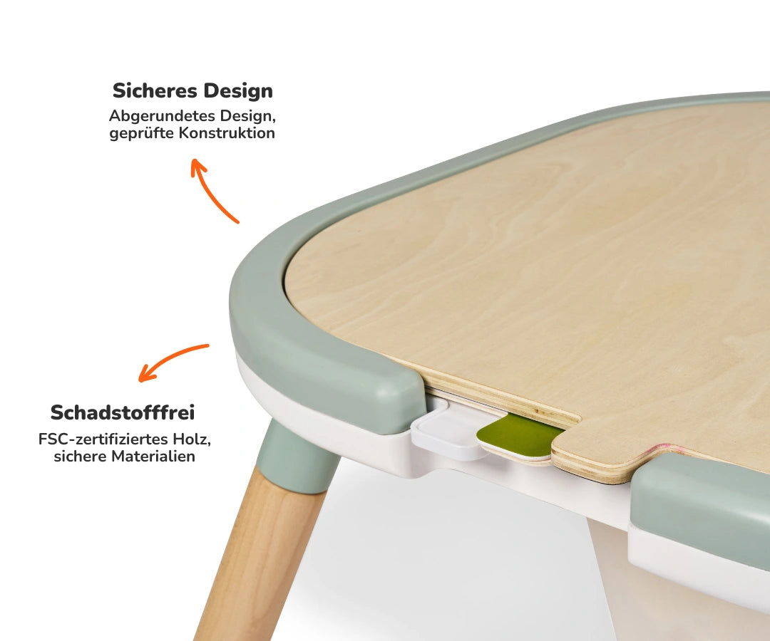 The Funzy play table is ideal for children from approximately 1.5 years old – that is, as soon as your child can sit independently and shows interest in their first creative activities. Thanks to its grow-with-me design, it adapts to children up to approximately age 8.