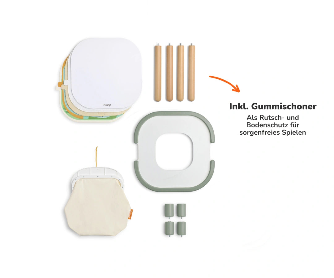 Four double-sided activity boards = eight diverse play areas. Whether building, painting, sorting, or sensory activities – each side brings new ideas to the child's room, without the need for a screen or sensory overload.