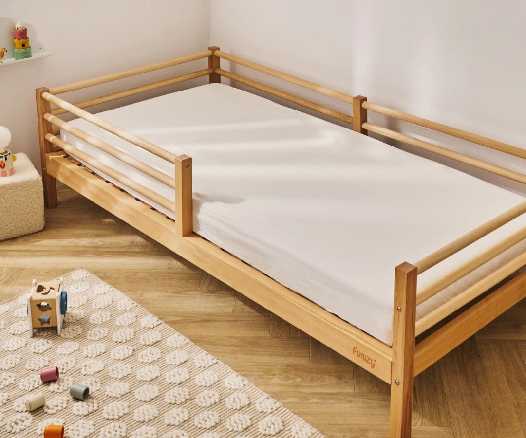 Das Funzy Spannbettlaken schützt die Matratze zuverlässig vor Flüssigkeiten, kleinen Missgeschicken oder Verschmutzungen – perfekt auf die Funzy Kindermatratze ↗ abgestimmt. Dank der PU-Membran ist es 100 % wasserdicht, gleichzeitig atmungsaktiv und angenehm weich auf der Haut. Das Laken ist hypoallergen und hautfreundlich, ideal für empfindliche Kinderhaut, und lässt Luft zirkulieren, sodass ein gesundes Schlafklima erhalten bleibt.